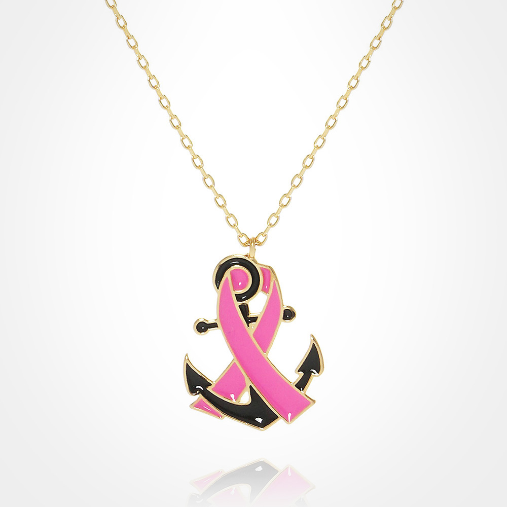 Details • Necklace Size : 15.5" + 2" L • Pendant Size : 0.6" X 0.75" • Show strength and support with this pink ribbon anchor necklace, combining the anchor’s symbol of stability with the ribbon’s message of hope and awareness. A meaningful piece that honors resilience, making it a thoughtful gift or keepsake for courage and love. • Lead and Nickel Compliant • Made In Korea • Gold Dipped
