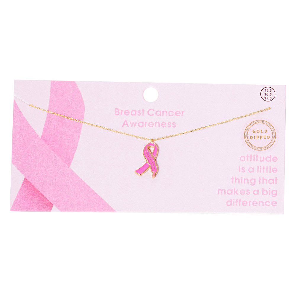 Gold Dipped Enamel Feather Detailed Pink Ribbon Pendant Necklace Gold Dipped Enamel Feather Detailed Pink Ribbon Pendant Necklace Gold Dipped Enamel Feather Detailed Pink Ribbon Pendant Necklace