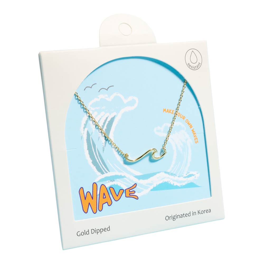 Details • Necklace Size : 16" + 2" L • Pendant Size : 0.7" X 0.25" • Minimal wave symbol pendant necklace inspired by movement, freedom, and personal flow. Designed as an everyday meaningful accessory, this necklace is ideal for gifting, layering, or adding a relaxed coastal vibe to boutique jewelry collections focused on symbols, travel, and inspiration. • Gold Dipped • Hypoallergenic • Made In Korea