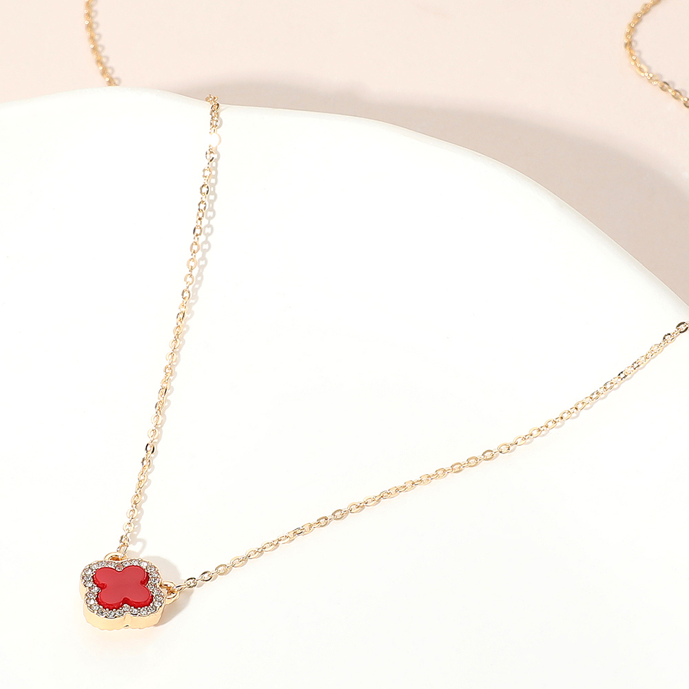 Details • Necklace Size : 16" + 3" L • Pendant Size : 0.5" X 0.5" • This dainty quatrefoil charm pendant necklace showcases a single elegant motif framed by a shimmering border for a refined touch. Its minimalist design and adjustable chain make it perfect for layering or wearing solo, adding a hint of sophistication to both casual and dressy ensembles. • Gold Dipped • Lead and Nickel Compliant