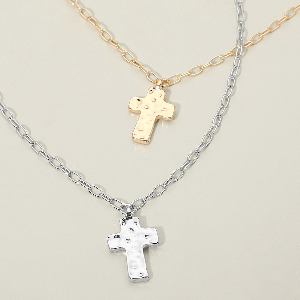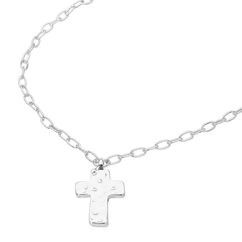 Details • Necklace Size : 16" + 3.25" L • Pendant Size : 0.7" X 1.25" • Classic chain necklace featuring a textured cross pendant designed for everyday styling or meaningful gifting. The simple silhouette layers effortlessly with other necklaces or stands alone as a subtle statement, making it suitable for casual wear, work looks, or special occasions. • Lead and Nickel Compliant