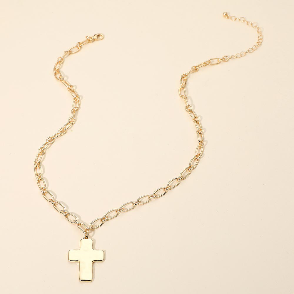 • Timeless cross pendant necklace featuring a sleek link chain design and polished finish. The minimalist cross charm adds a touch of faith and style, perfect for layering or standalone wear, offering an elegant statement suitable for everyday or special occasions.