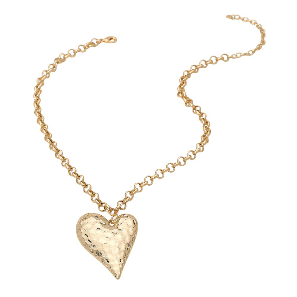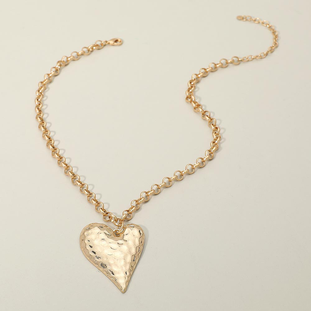 • Elevate your look with this hammered heart pendant chain necklace featuring a bold link design and sculpted heart charm. A modern statement accessory perfect for everyday wear, gifting, or styling with layered jewelry for added impact.