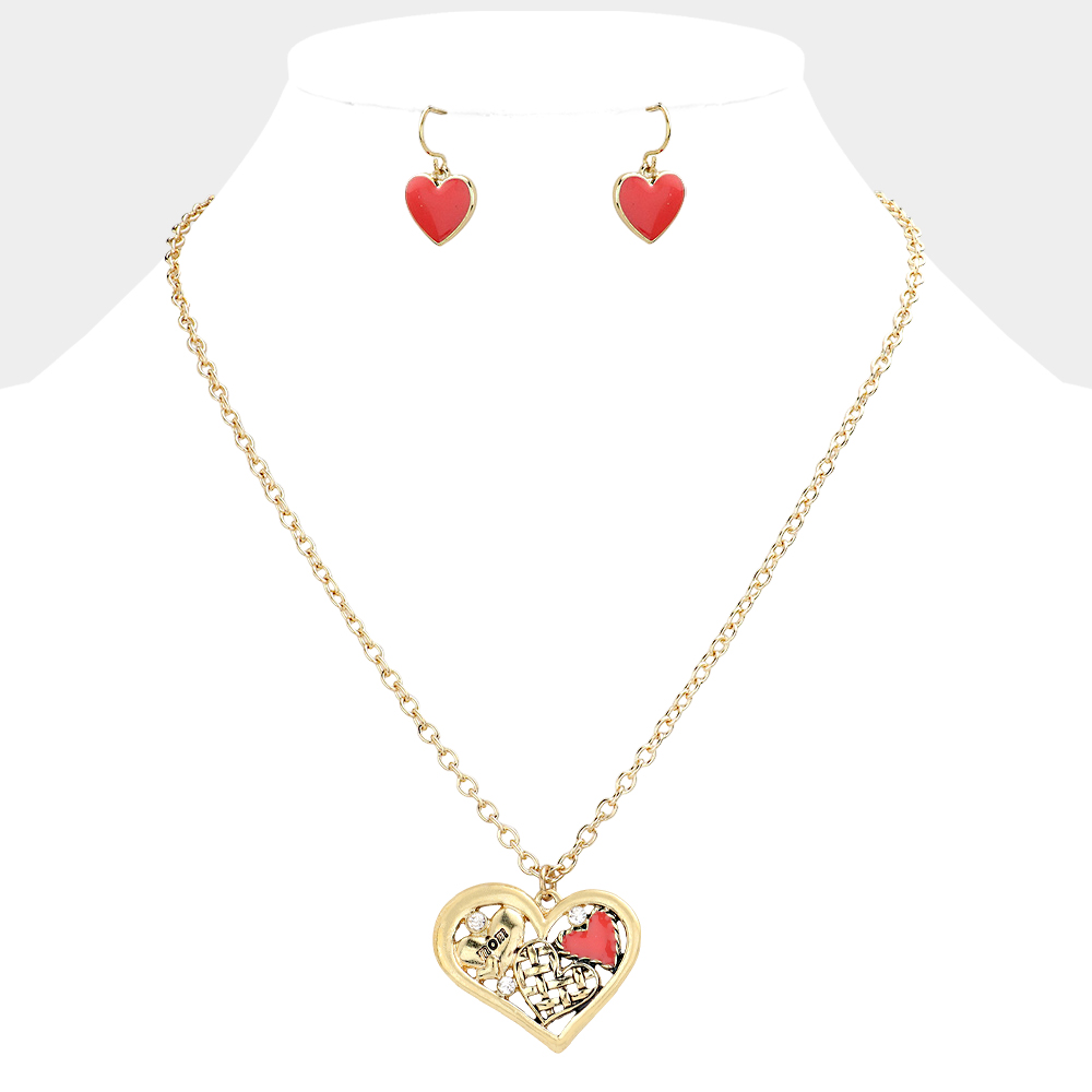 18K Gold Dipped Puffy Heart Pendant Chunky Resin Disc Beaded Necklace
