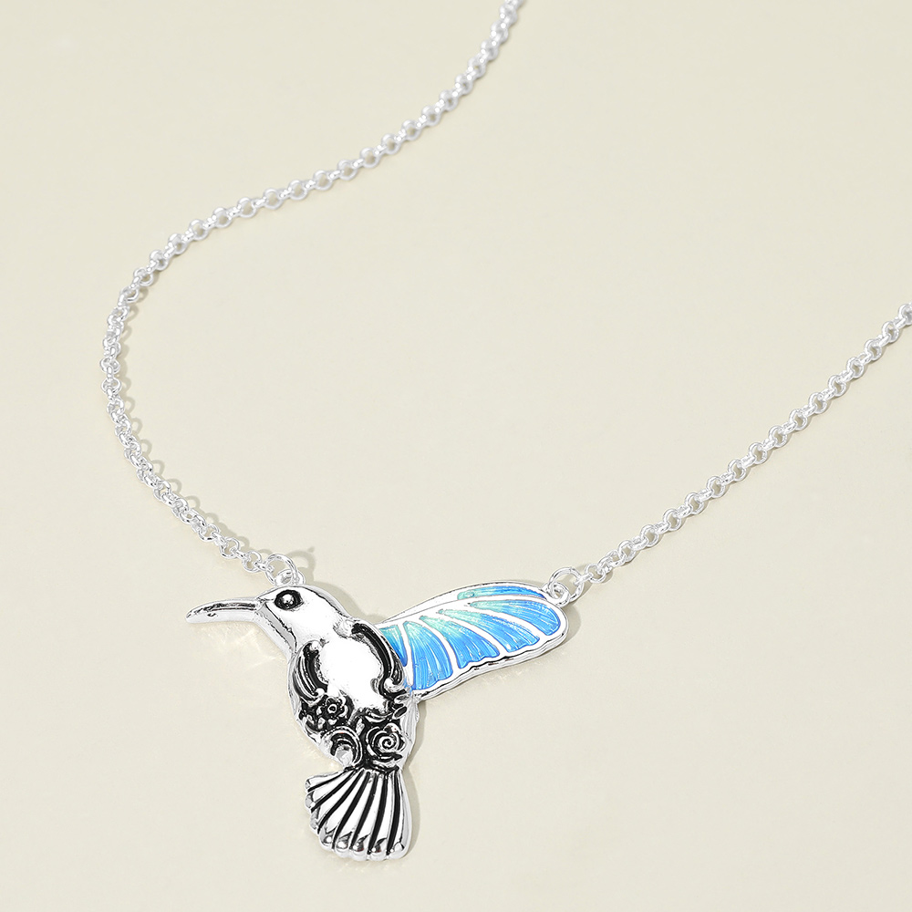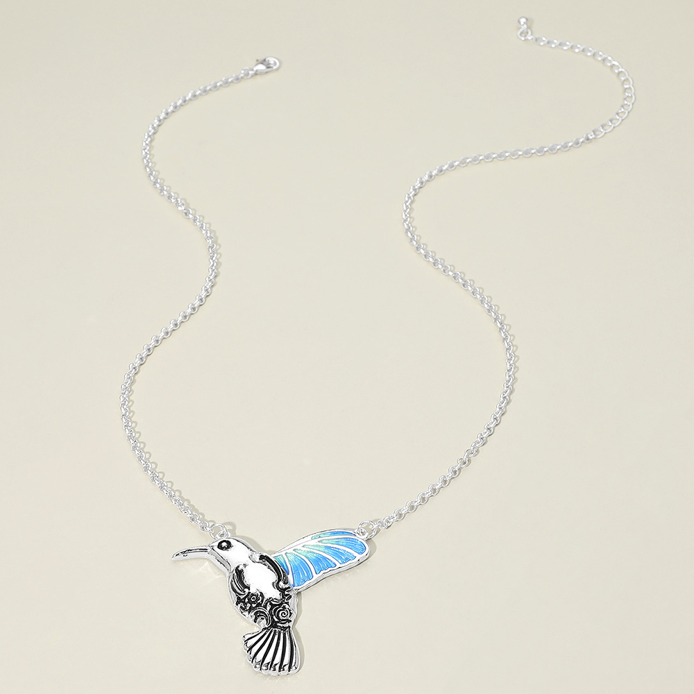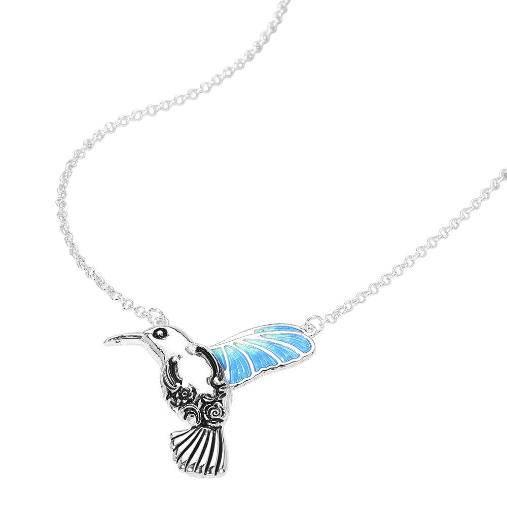 Details • Necklace Size : 20" + 3" L • Pendant Size : 2" X 2" • This hummingbird pendant chain necklace features a finely detailed bird charm with sculpted wings and an elegant silhouette. Designed to symbolize joy and movement, it offers a lightweight, eye-catching accent that layers beautifully or stands alone. A versatile piece ideal for everyday styling, gifting, and curated boutique jewelry collections. • Lead and Nickel Compliant