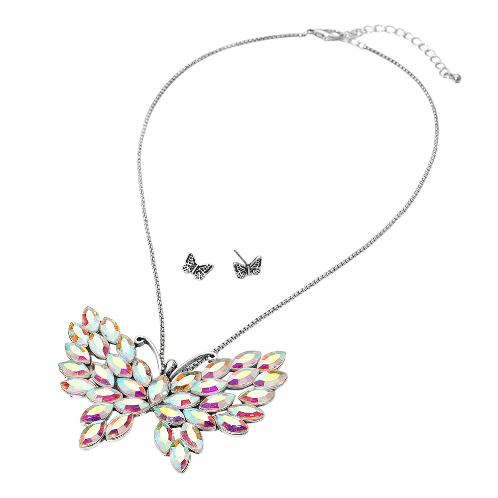 Iridescent Marquise Stone Cluster Butterfly Pendant Necklace Iridescent Marquise Stone Cluster Butterfly Pendant Necklace