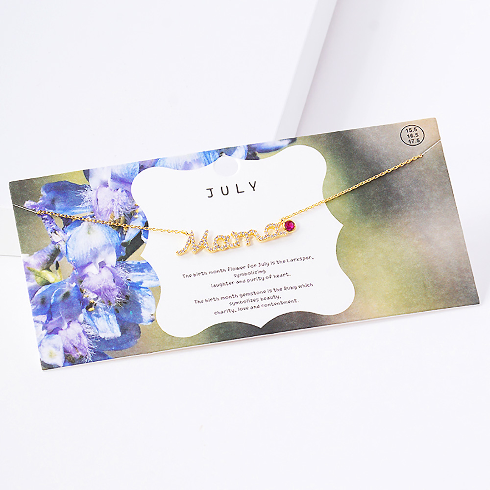 July Birthstone MAMA Message Pendant Necklace
