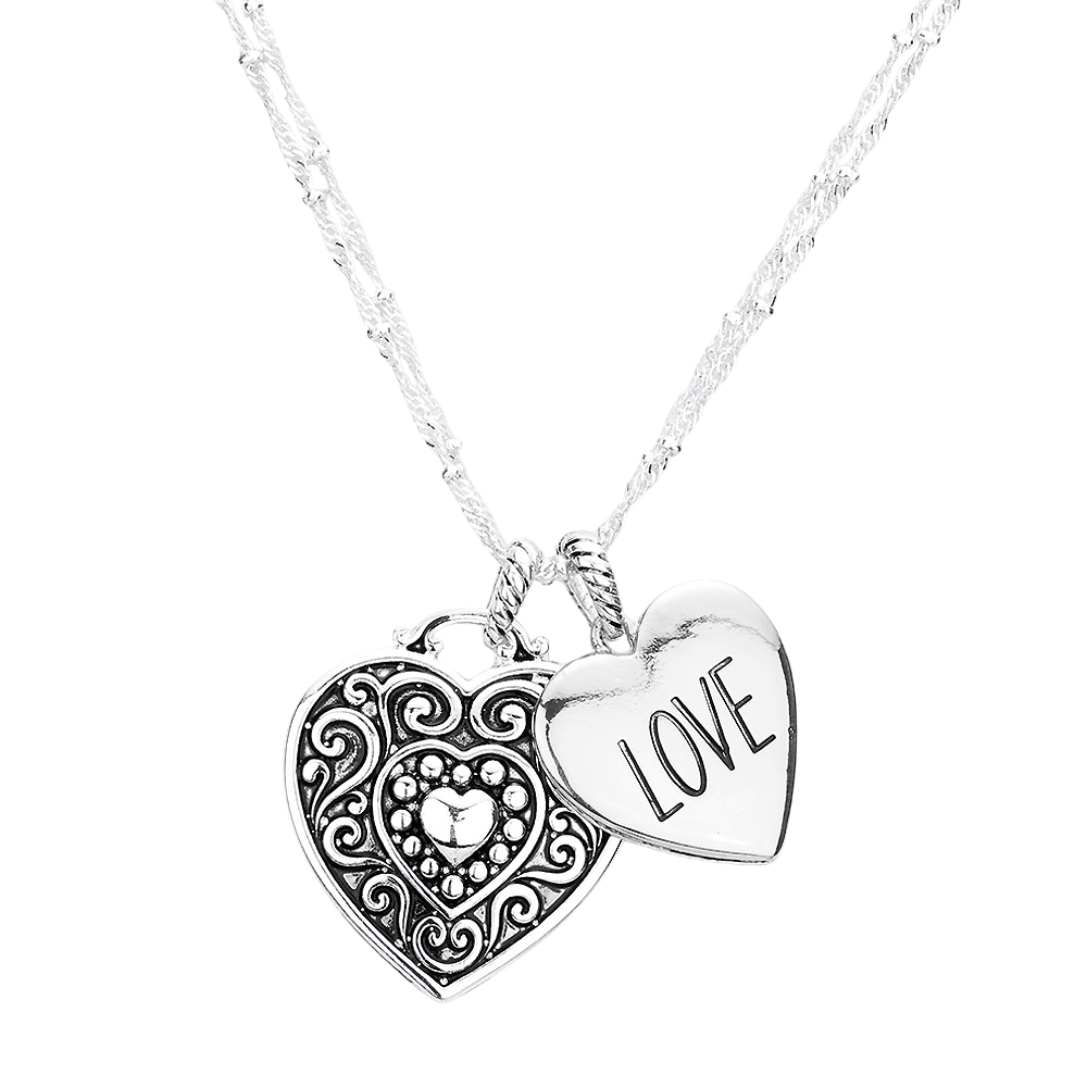 Pearl Heart Pendant Accent Triple Chain Layered Necklace