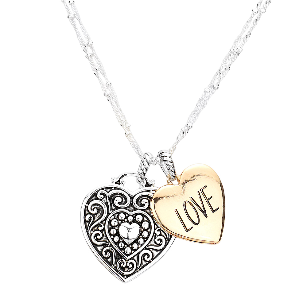 SECRET BOX_Stone Paved Key Heart Metal Lock Charm Station Chain Necklace