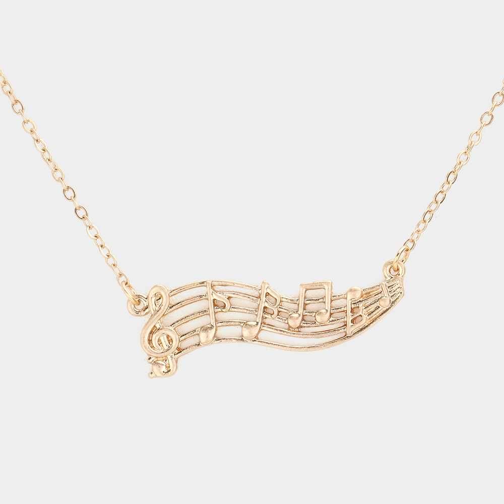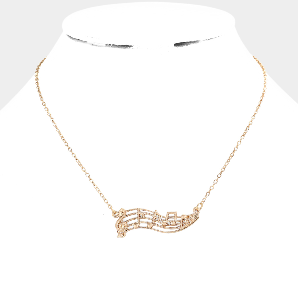 Stainless Steel CZ Stone Paved Treble Clef Pendant Necklace