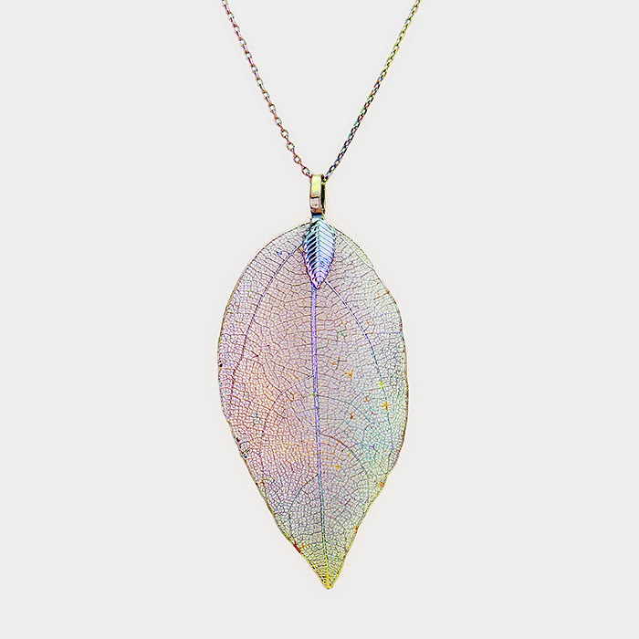Natural Dipped Filigree Leaf Pendant Necklace