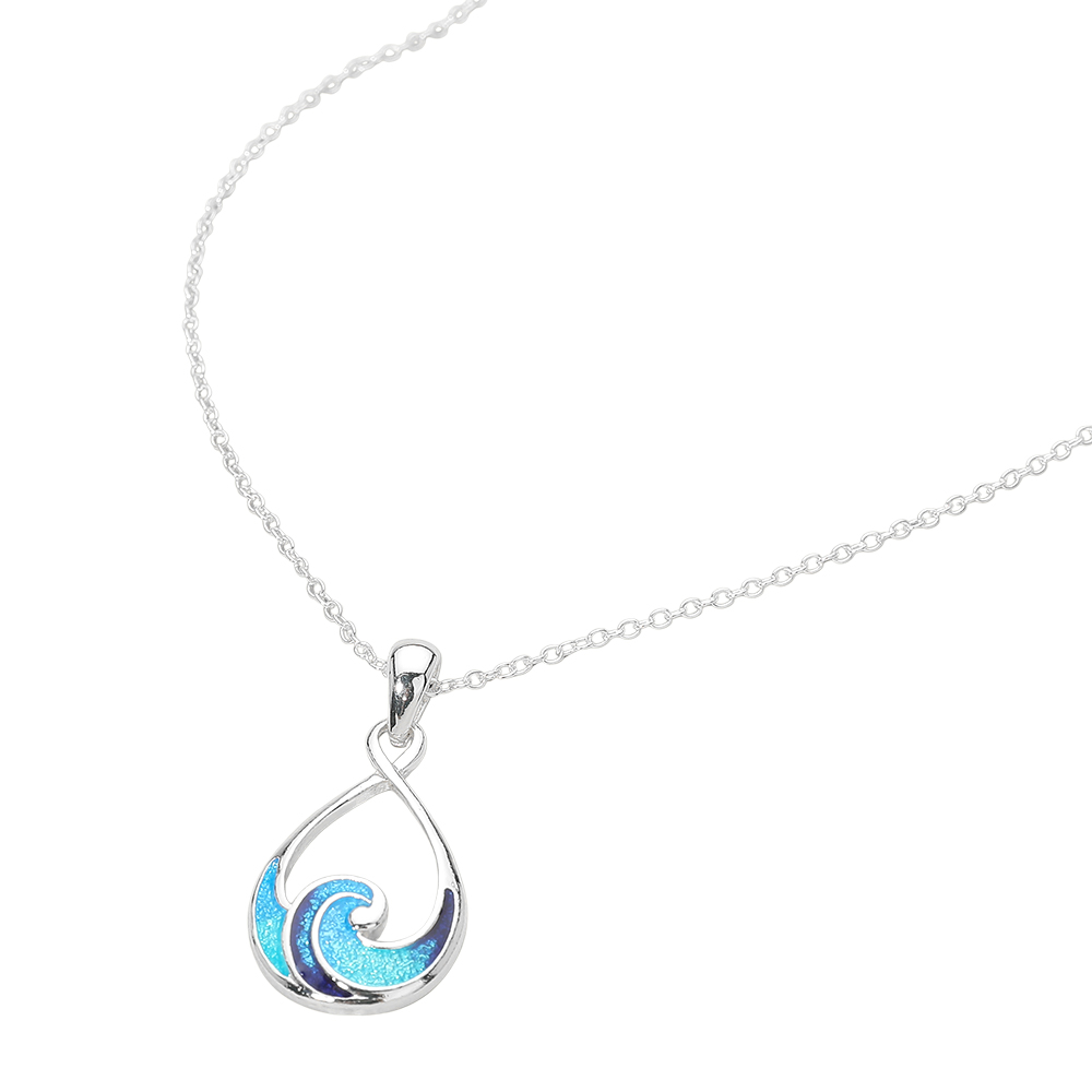 Details • Necklace Size : 18" + 3" L • Pendant Size : 0.8" X 1.6" • Ocean wave drop pendant necklace featuring a flowing swirl silhouette inspired by motion and balance. Designed to elevate everyday styling while remaining versatile for gifting or layering. A refined statement piece ideal for boutique jewelry collections and ocean-inspired fashion themes. • Lead and Nickel Compliant