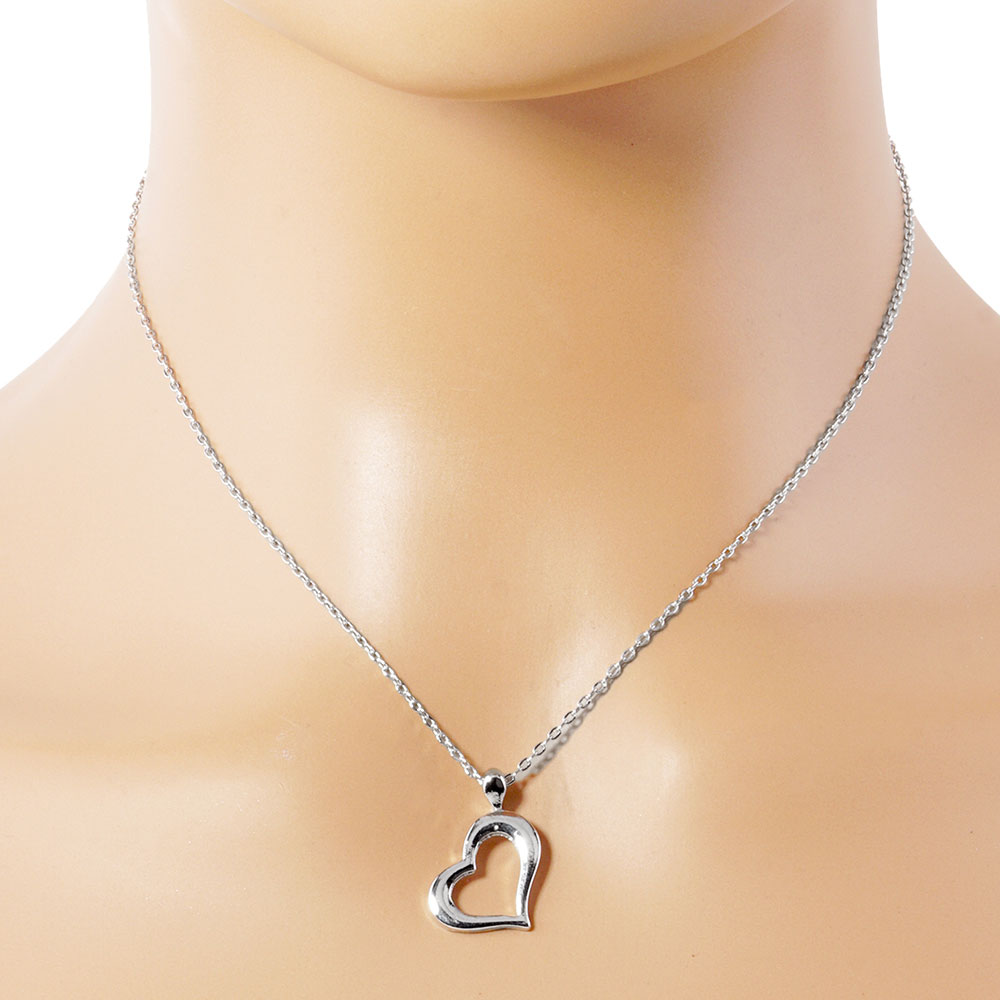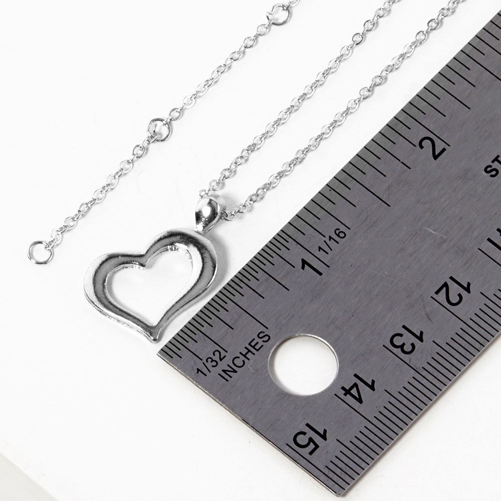 Details • Necklace Size : 15.5" + 2" L • Pendant Size : 0.6" X 0.8" • Elegant open heart pendant necklace featuring a smooth hollow heart charm on a delicate chain. A simple, meaningful accessory ideal for everyday wear or gifting, adding a touch of timeless style to any outfit. • Lead and Nickel Compliant