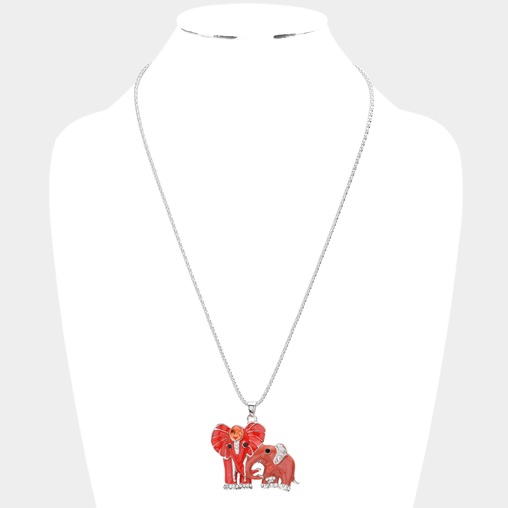 Oval Stone Accented Enamel Elephant Pendant Necklace