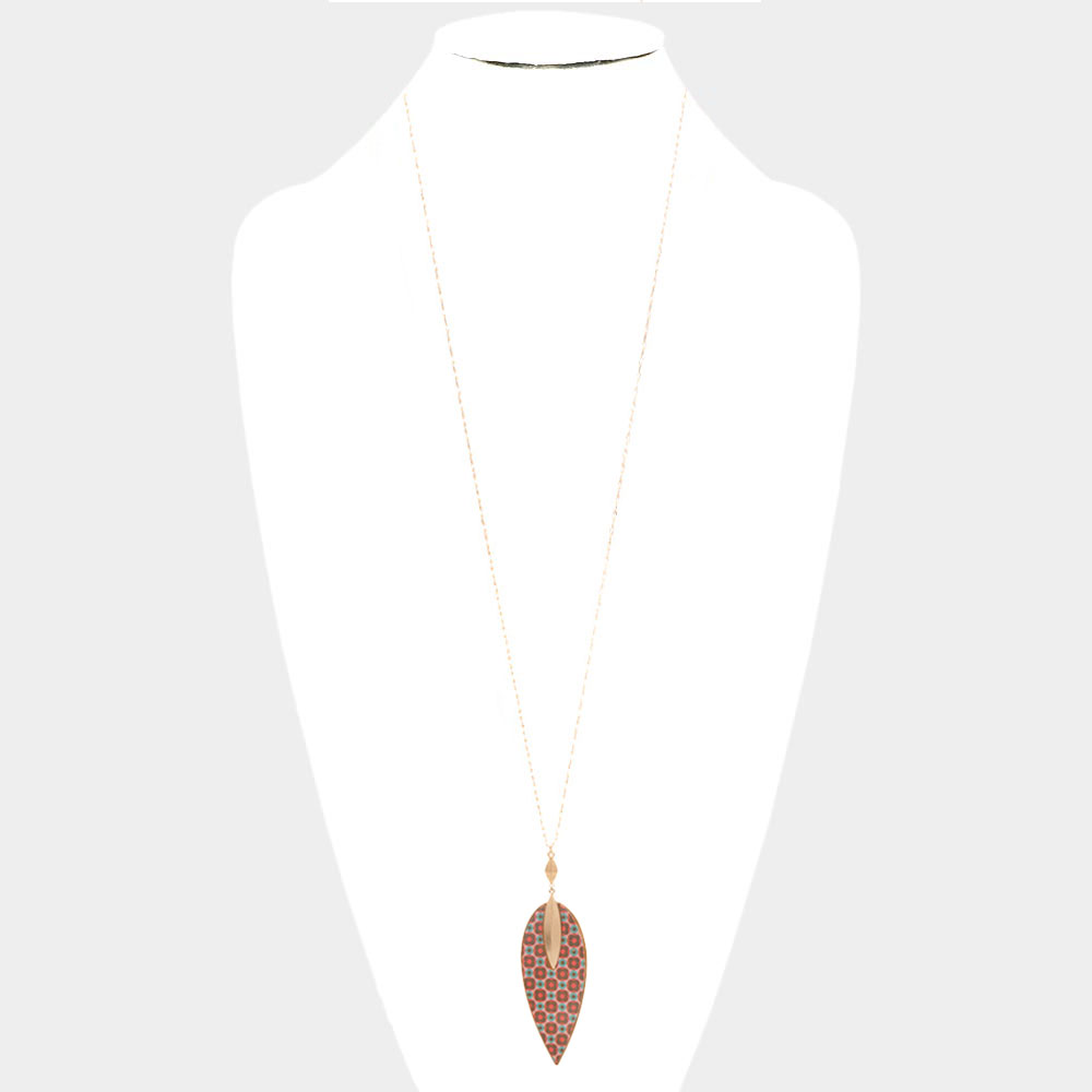 Enamel Detailed Cutout Metal Round Pendant Long Necklace