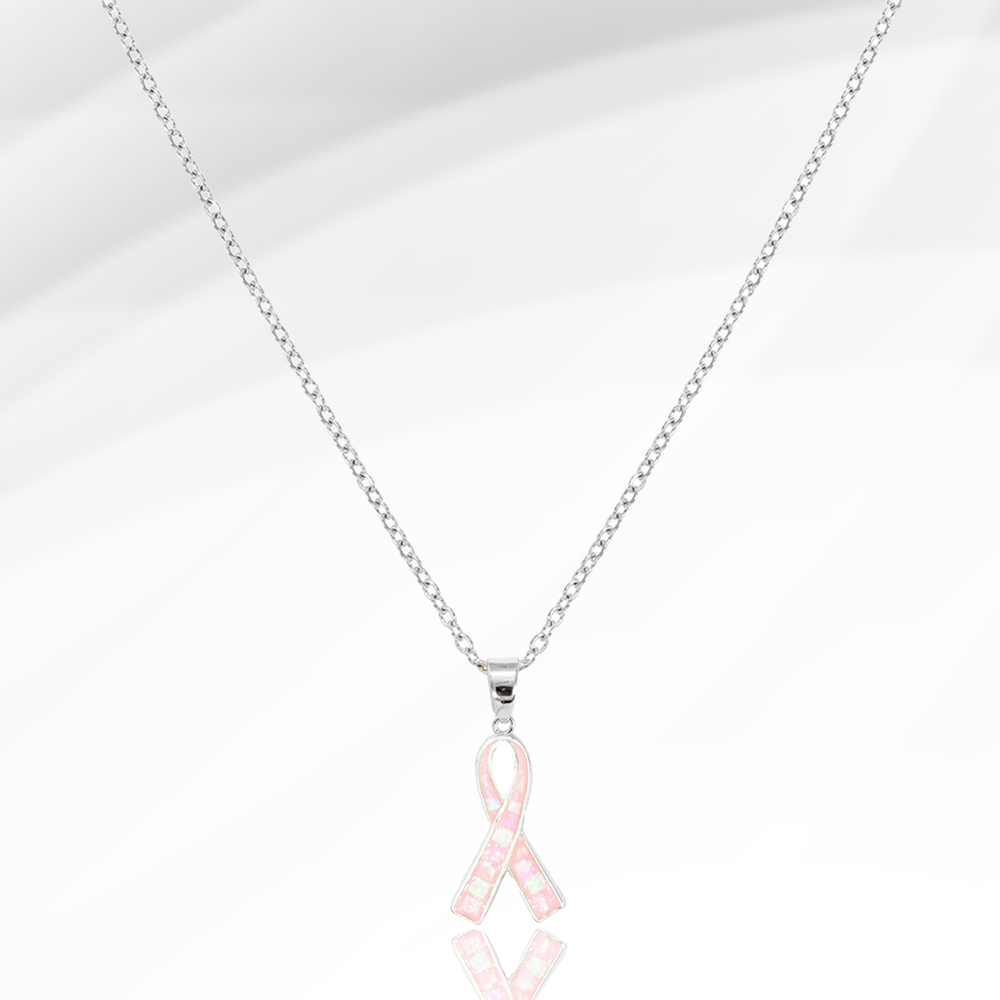 Never Give Up Disc Wing Pink Ribbon Charm Multi Beaded Necklace