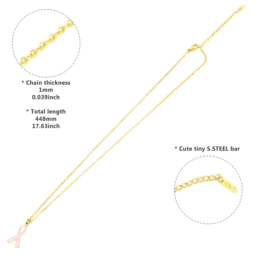 Pink Ribbon Charm Pointed Stainless Steel Ball Beaded Stretch Bracelet
