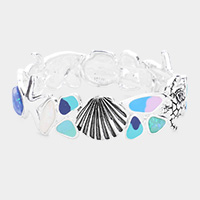 Bold Texture Metal Starfish Pendant Accent Beaded Statement Necklace