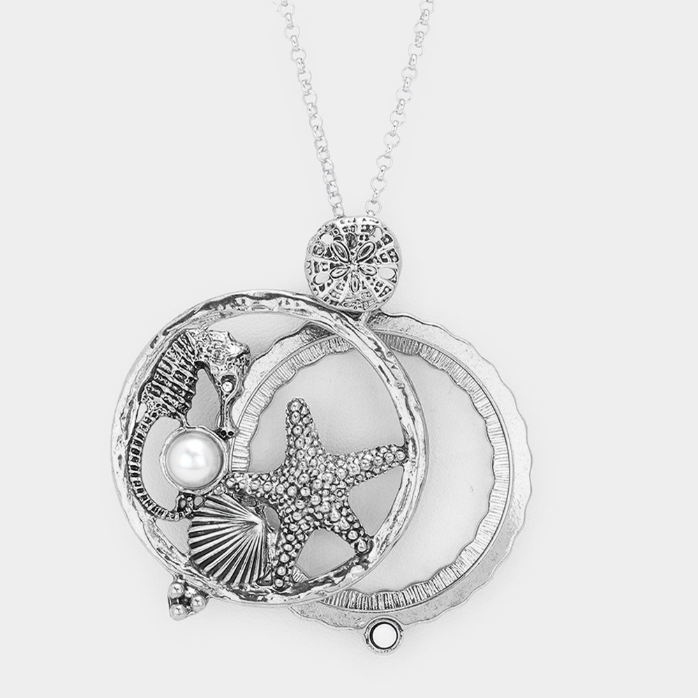 Seahorse Starfish Shell Pearl Magnifying Glass Pendant Long Necklace