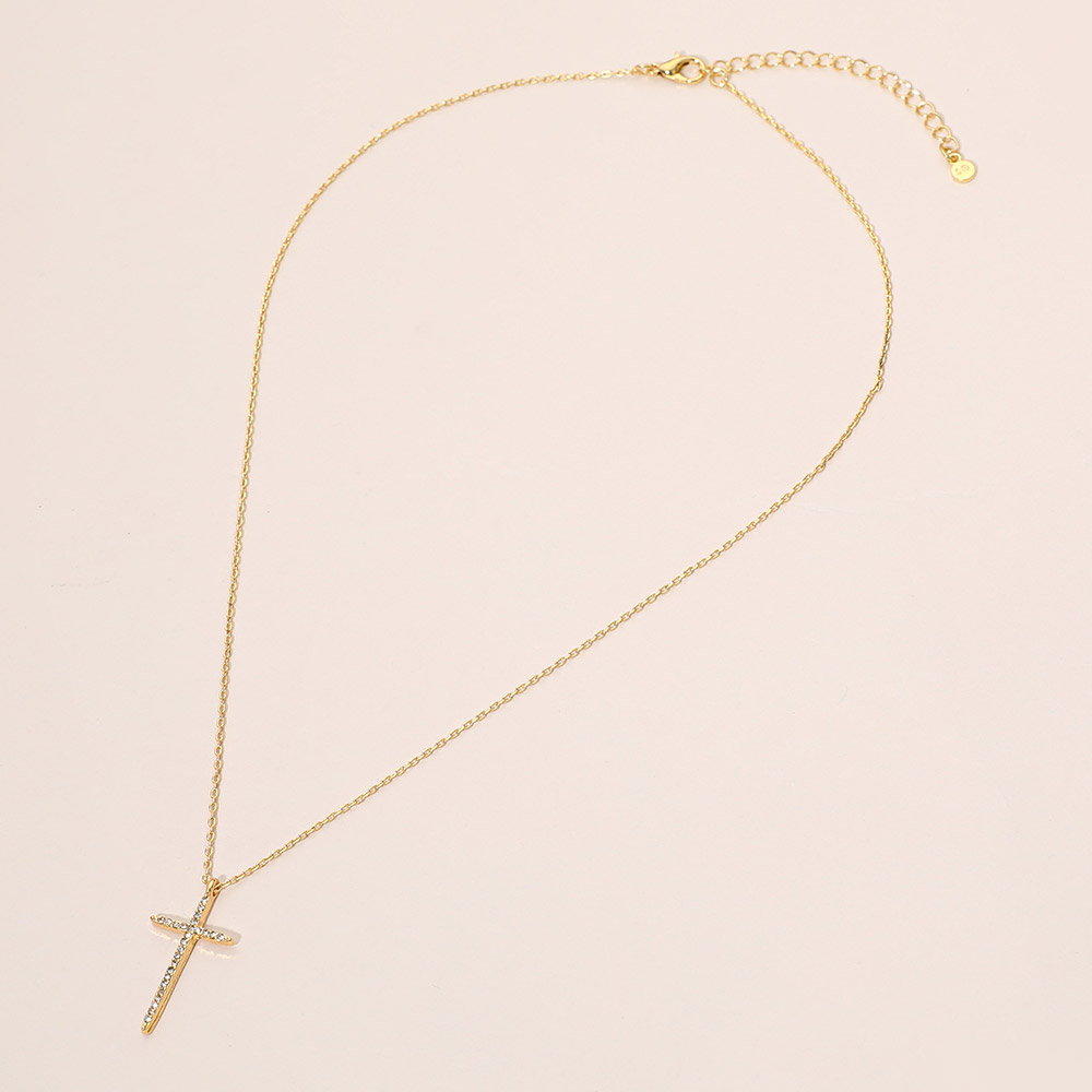• Refined cross pendant necklace featuring a pavĂ©-style design that adds subtle sparkle while maintaining a clean, elegant look. Perfect for everyday wear or layering, this timeless faith-inspired piece offers meaningful style that transitions effortlessly from casual outfits to special occasions.