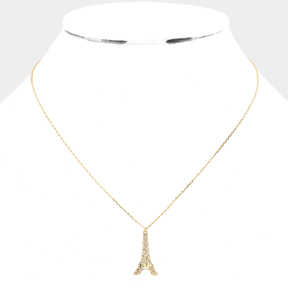 SECRET BOX_Brass Metal Eiffel Tower Pendant Necklace