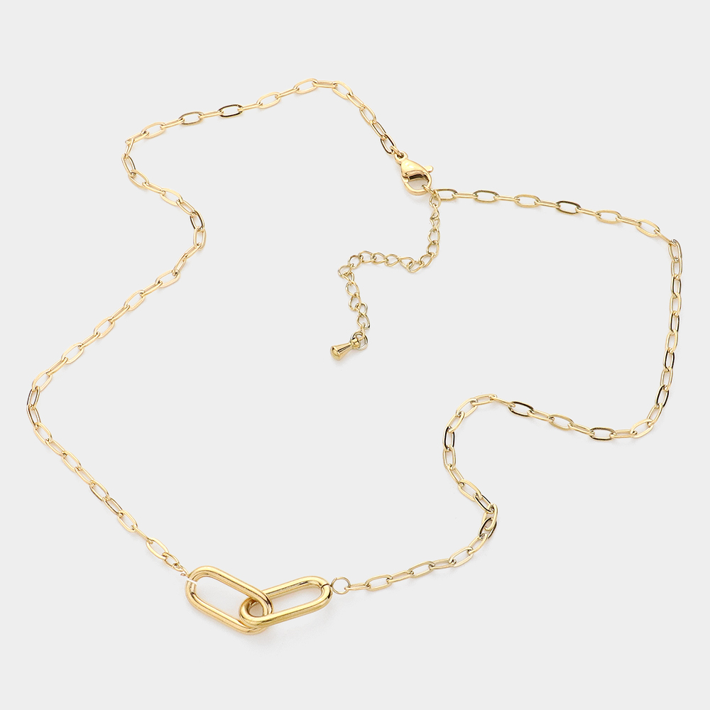 SECRET BOX_Stainless Steel Oval Chain Link Pendant Necklace