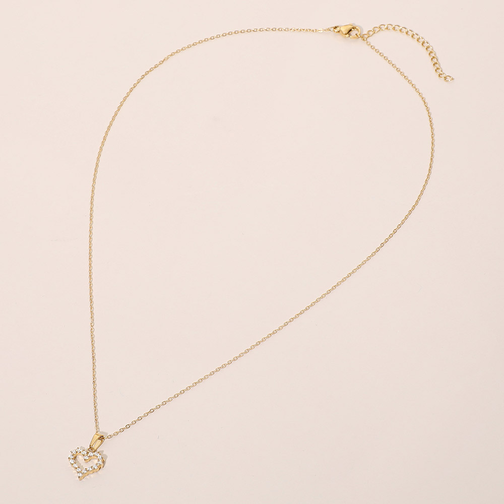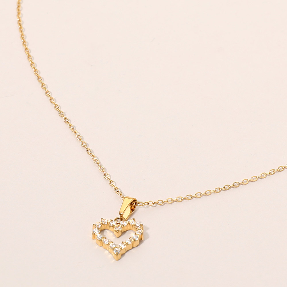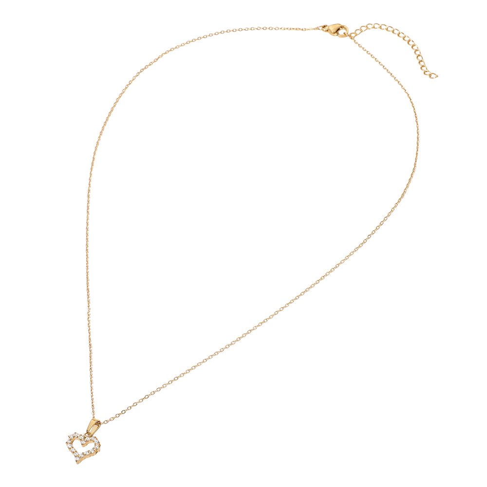 Details • Necklace Size : 17" + 2" L • Pendant Size : 0.4" X 0.6" • Elegant open heart pendant necklace designed with subtle sparkle for a timeless, romantic look. This delicate necklace layers beautifully or stands alone as a meaningful everyday accessory, making it a versatile choice for boutiques seeking classic yet giftable jewelry styles. • Hypoallergenic • Stainless Steel