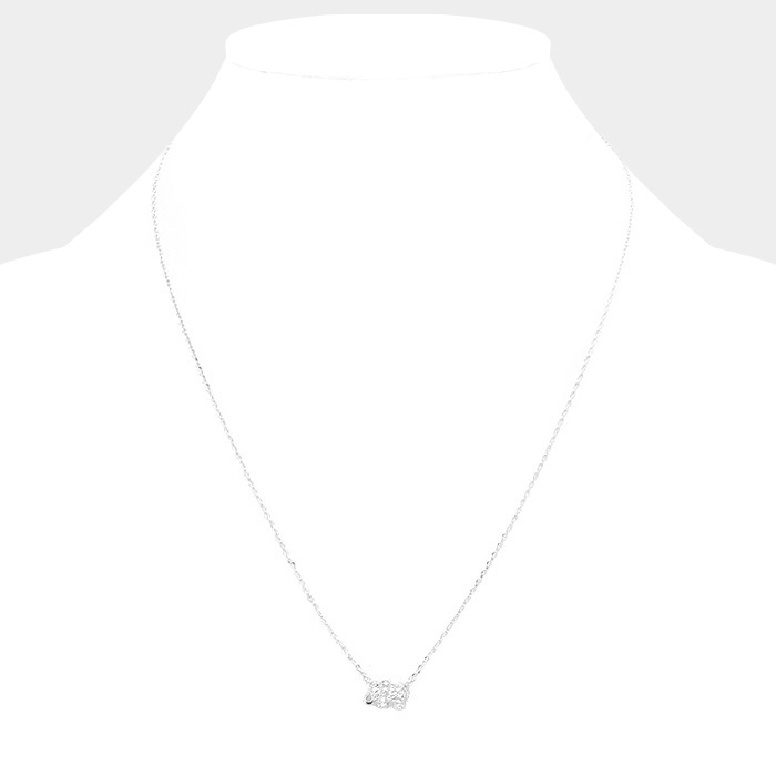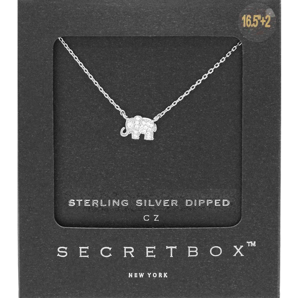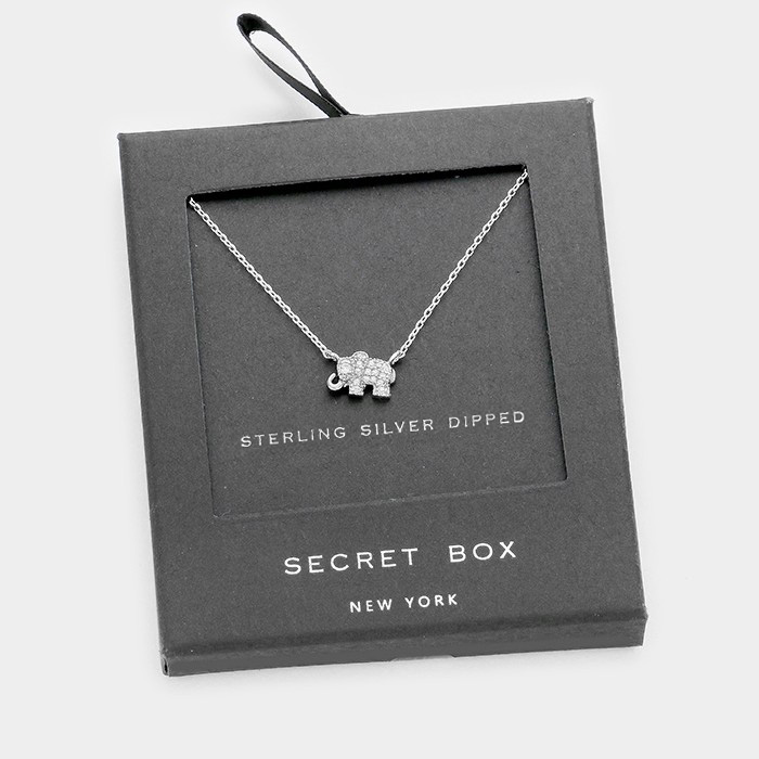 SECRET BOX_Sterling Silver Dipped CZ Stone Paved Elephant Pendant Necklace