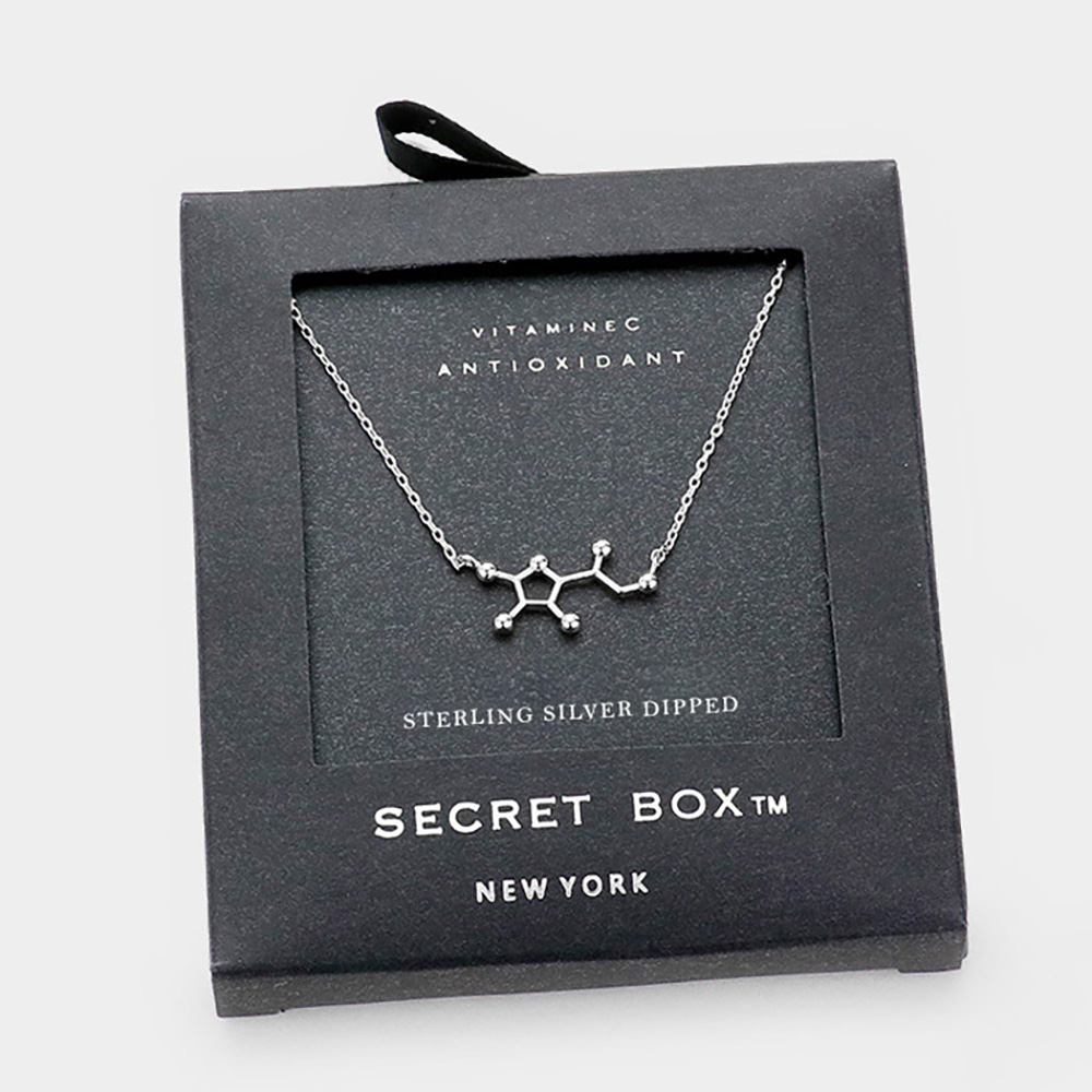 SECRET BOX_Sterling Silver Dipped Vitamin Hormone Molecule Necklace