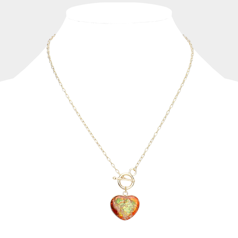Teardrop Oval Round Stone Metal Heart Charm Station Toggle Bracelet