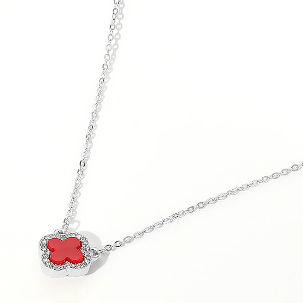 • This dainty quatrefoil charm pendant necklace showcases a single elegant motif framed by a shimmering border for a refined touch. Its minimalist design and adjustable chain make it perfect for layering or wearing solo, adding a hint of sophistication to both casual and dressy ensembles.
