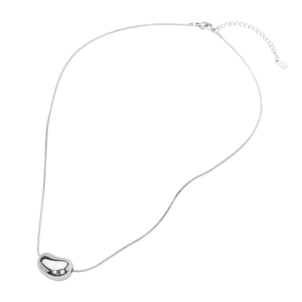 Details • Necklace Size : 16" + 2" L • Pendant Size : 0.7" X 0.5" • This stainless steel necklace highlights a smooth bean-shaped pendant on a fine chain, blending modern simplicity with artistic flair. Its polished finish adds refined elegance, making it a versatile accessory that complements both everyday and sophisticated styles effortlessly. • Stainless Steel