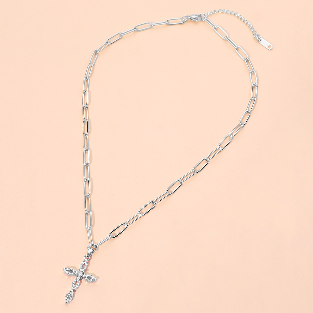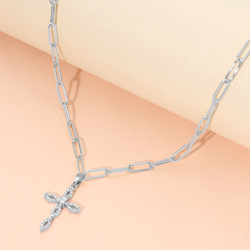 Details • Necklace Size : 15.75" + 2.25" L • Pendant Size : 0.7" X 1.25" • This CZ cross link chain pendant necklace showcases a modern elongated chain paired with a sparkling cross charm for a refined statement. Designed for everyday styling or layering, it delivers timeless symbolism, subtle shine, and versatile appeal perfect for boutique and gift-ready jewelry collections. • CZ Cubic Zirconia • Stainless Steel