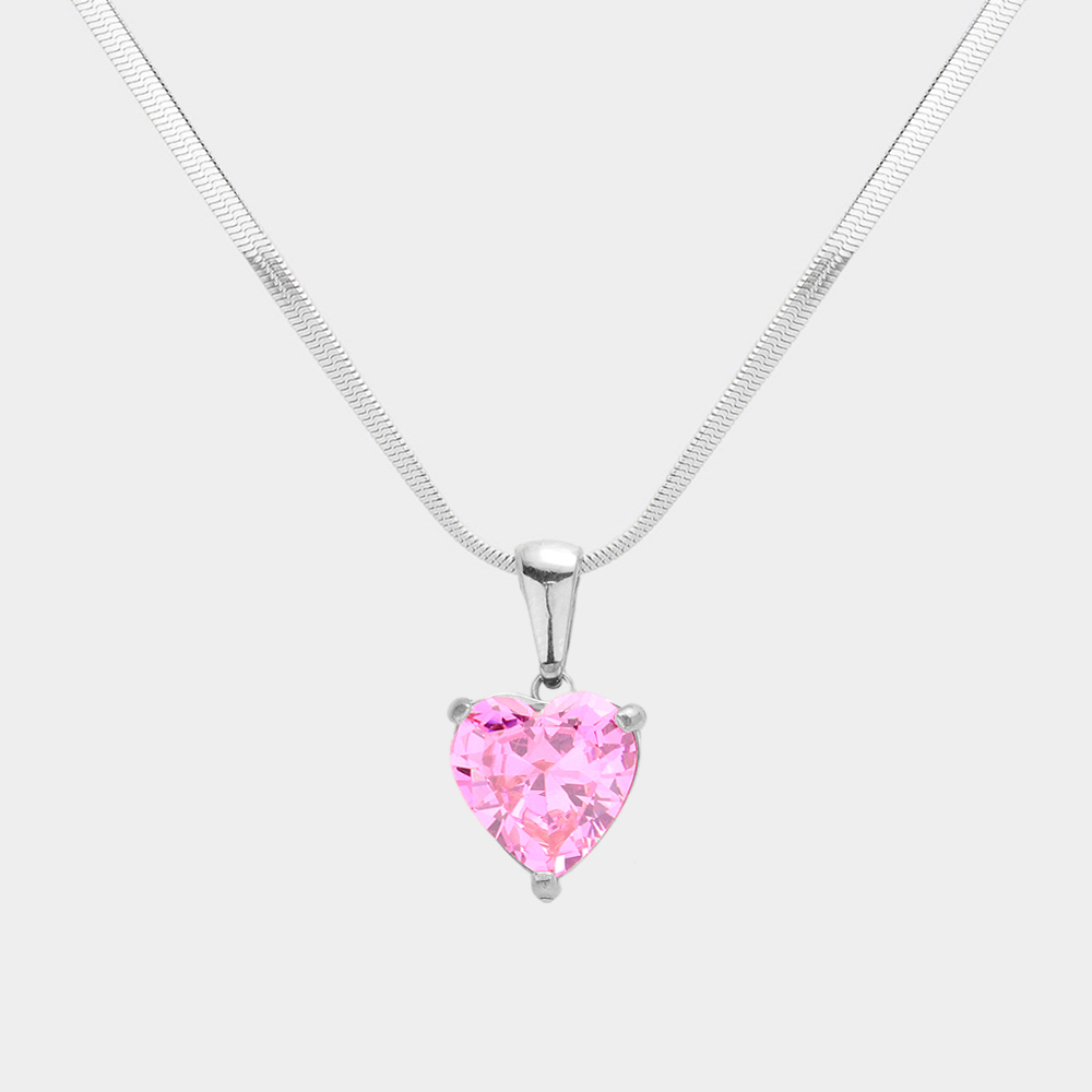 18K Gold Dipped Stainless Steel CZ Heart Pendant Necklace