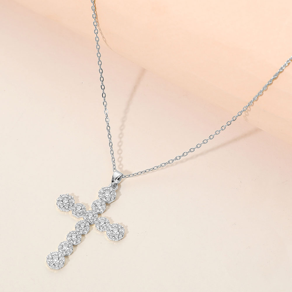 Details • Necklace Size : 15.5" + 2" L • Pendant Size : 1.1" X 1.75" • Timeless CZ cross pendant necklace designed for everyday wear and meaningful gifting. Features a refined cross charm with delicate detailing on a classic chain, perfect for layering or solo styling. Ideal for faith-inspired collections, boutique displays, and customers seeking symbolic jewelry with elegant, versatile appeal for daily outfits or special occasions. • CZ Cubic Zirconia • Stainless Steel