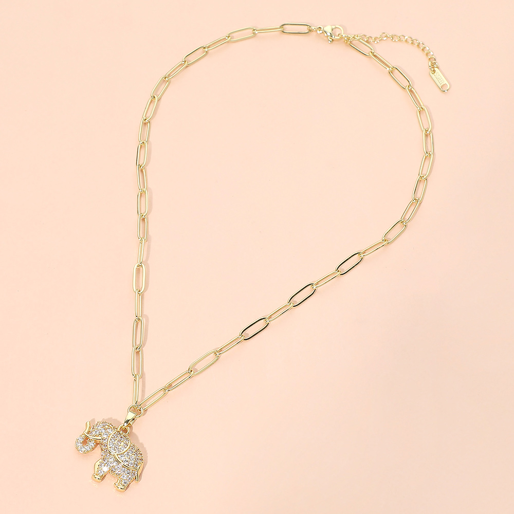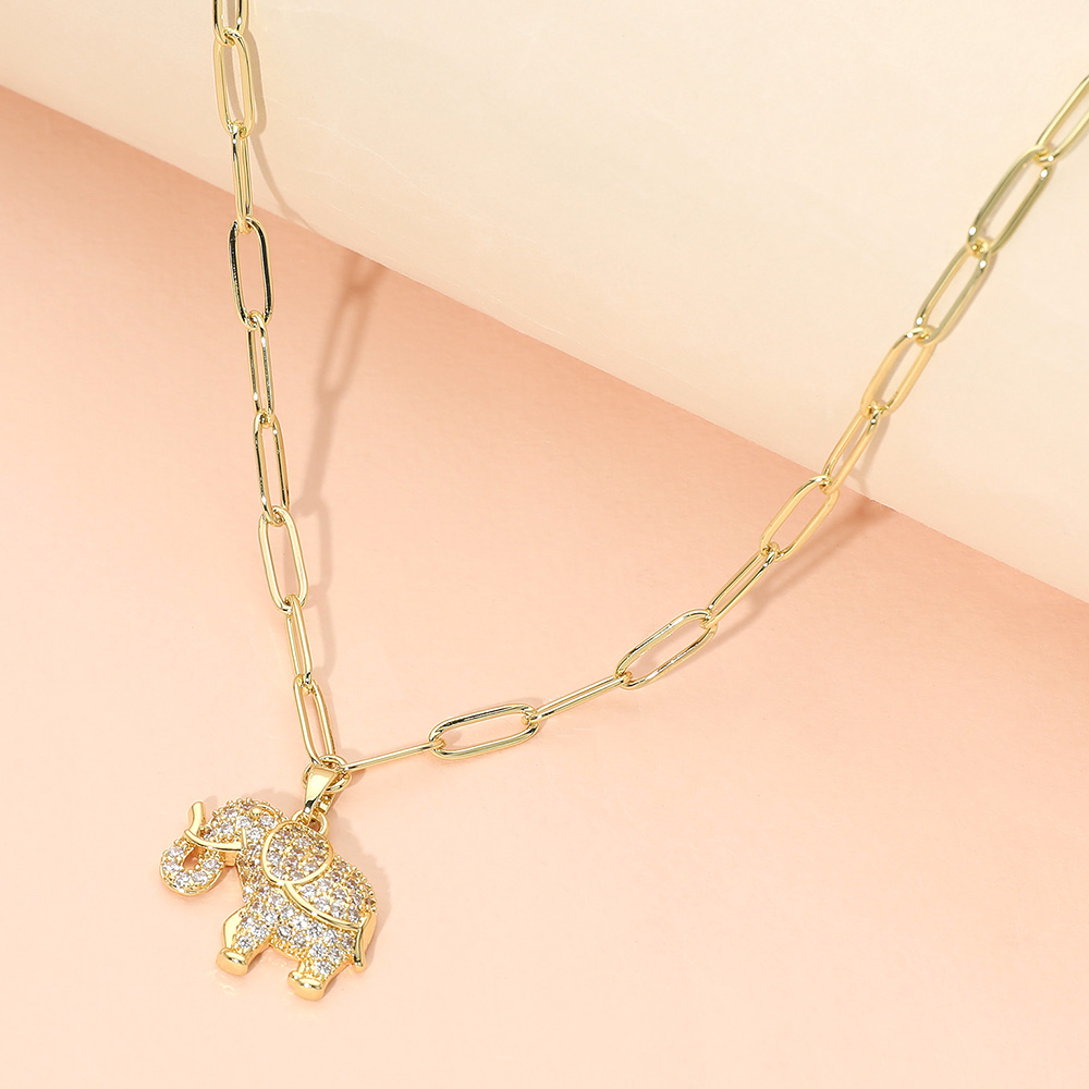 Details • Necklace Size : 15.75" + 2.25" L • Pendant Size : 1" X 09" • This elephant charm link chain pendant necklace features a detailed, symbolic design that represents luck, strength, and wisdom. A versatile statement piece for everyday wear, gifting, or boutique collections, it pairs well with casual or elevated looks and layers effortlessly with other necklaces. • CZ Cubic Zirconia • Stainless Steel