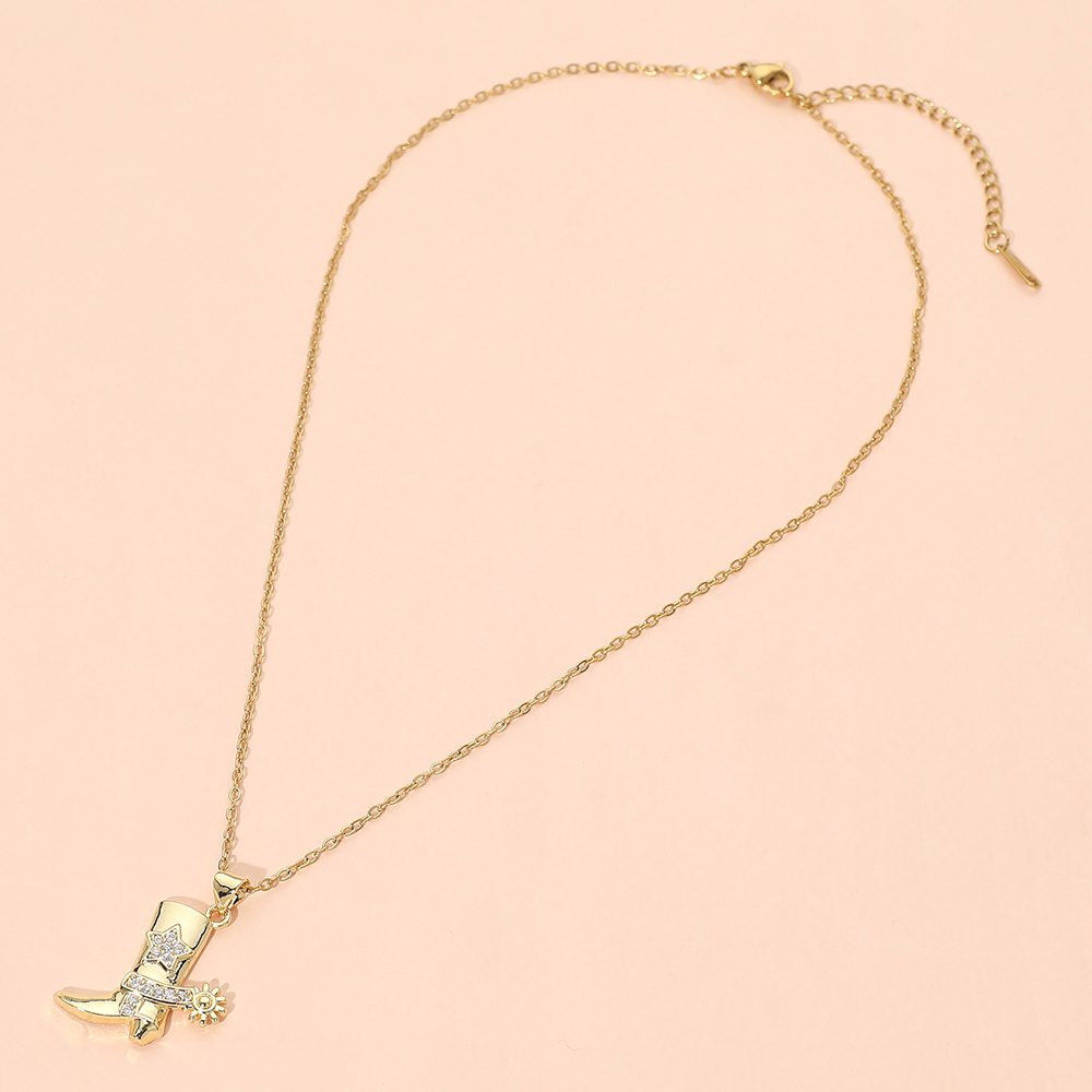 • This cowboy boot charm pendant necklace features a playful western-inspired design accented with sparkling details for added character. A stylish statement piece that symbolizes adventure and individuality, it is perfect for everyday wear, gifting, or adding a trendy western touch to boutique jewelry collections.