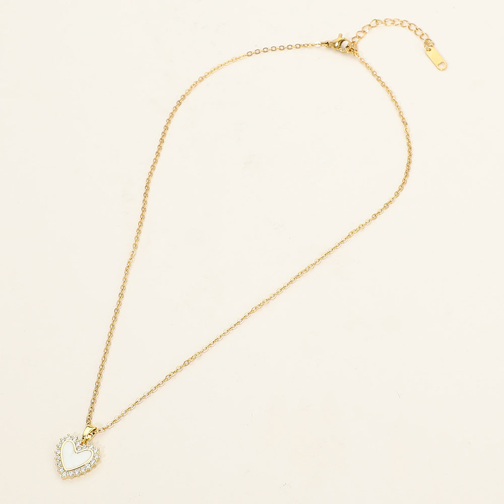 Details • Necklace Size : 15.5" + 2" L • Pendant Size : 0.6" X 0.75" • Elegant mother of pearl heart charm pendant necklace featuring a refined cz pave-style border and smooth center detail. Designed for everyday wear or special occasions, this timeless necklace adds a romantic, polished touch to layered looks or standalone styling, making it an ideal choice for gift shops, boutiques, and trend-focused accessory collections. • CZ Cubic Zirconia • Stainless Steel