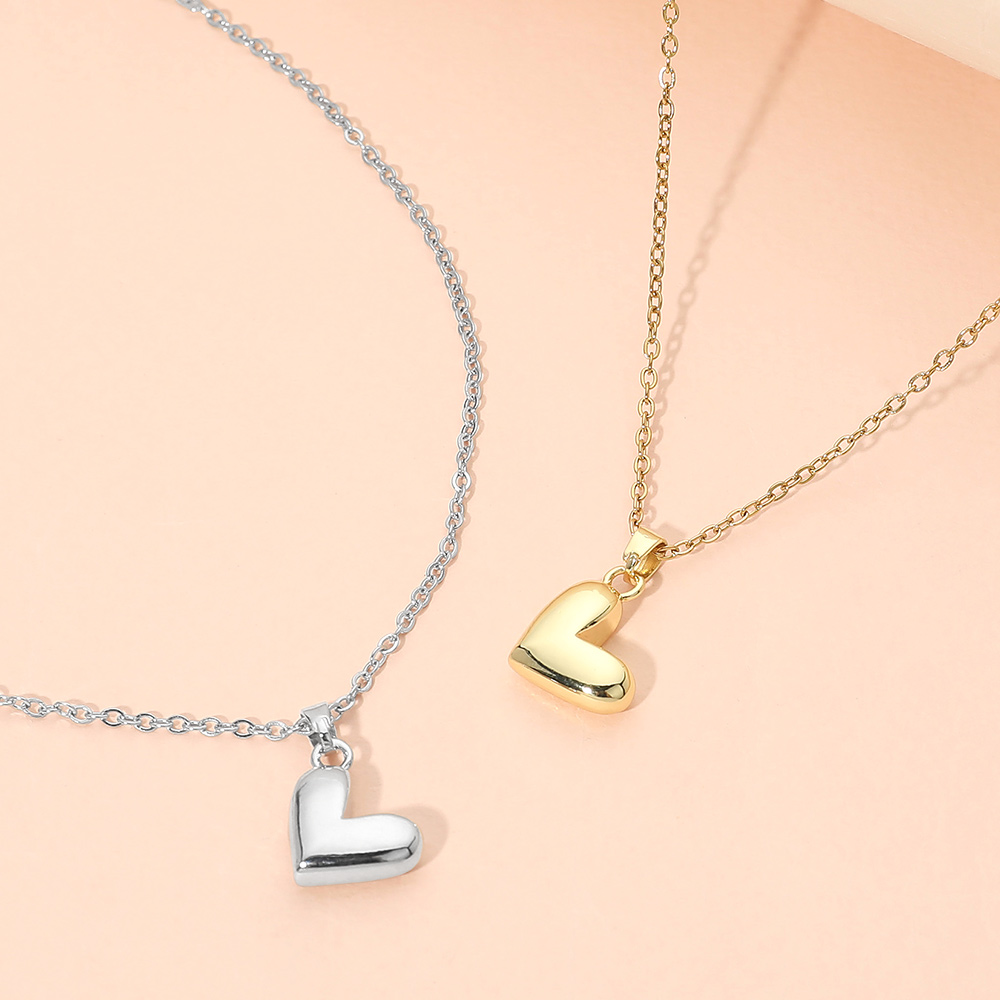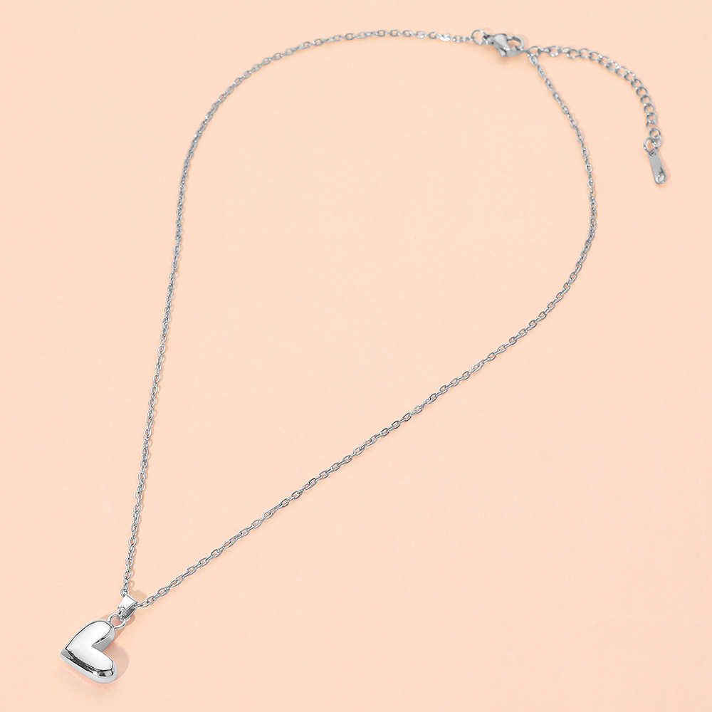 Details • Necklace Size : 15.5" + 2.25" L • Pendant Size : 0.5" X 0.75" • This minimal heart pendant chain necklace features a smooth heart charm suspended from a delicate classic chain for an elegant, everyday look. Designed for effortless layering or solo wear, it delivers timeless appeal, making it ideal for gifting, boutique displays, and modern jewelry collections. • Stainless Steel