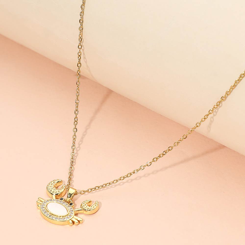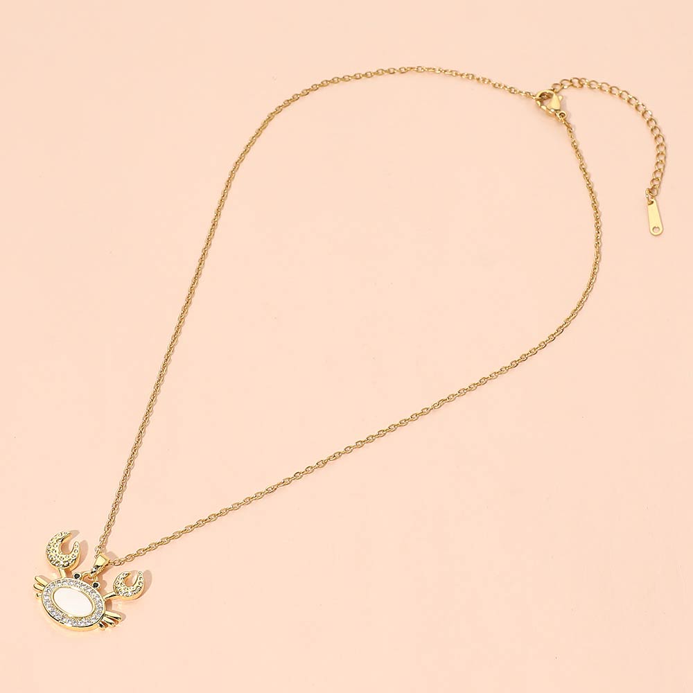 Stainless Steel Mother of Pearl CZ Stone Paved Crab Charm Pendant Necklace Stainless Steel Mother of Pearl CZ Stone Paved Crab Charm Pendant Necklace Stainless Steel Mother of Pearl CZ Stone Paved Crab Charm Pendant Necklace