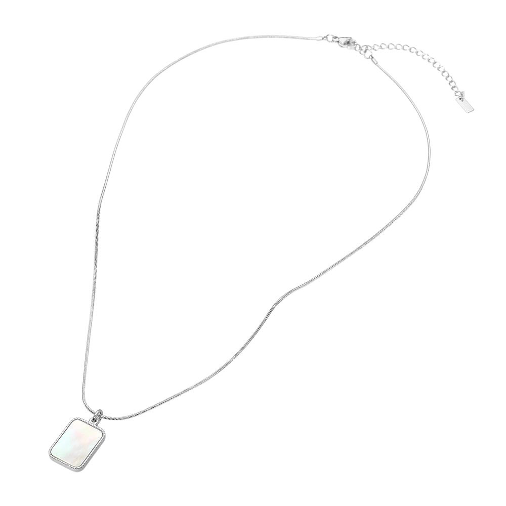 18K Gold Dipped Stainless Steel Mother of Pearl Rectangle Pendant Necklace