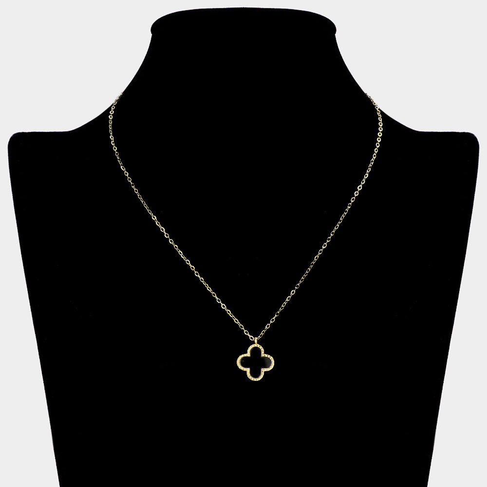 Details • Necklace Size : 16" + 1.5" L • Pendant Size : 0.6" X 0.6" • Elegant quatrefoil pendant necklace featuring a sleek chain and refined charm. A versatile accessory that adds timeless style to any outfit, from casual looks to formal occasions. Perfect as a meaningful gift or a personal staple piece, designed to bring a touch of elegance to your jewelry collection. • Stainless Steel