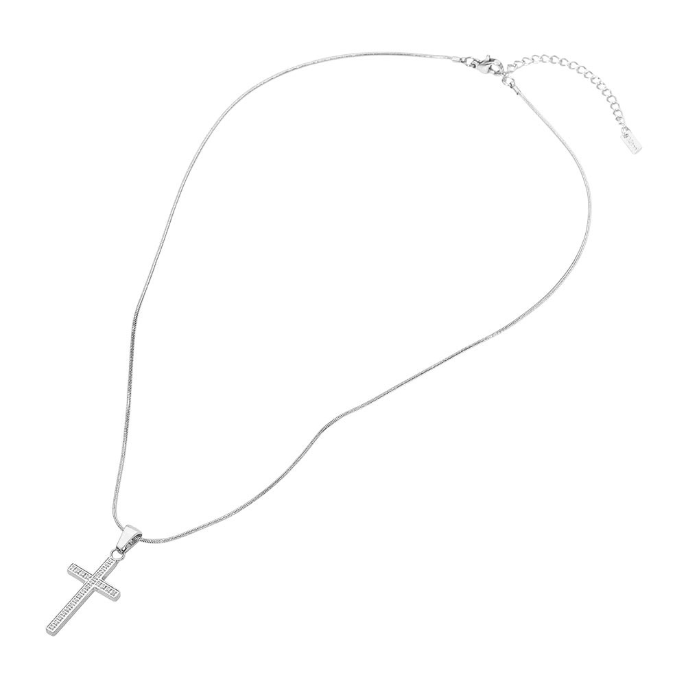• This stainless steel necklace features a classic cross pendant adorned with subtle detailing for a timeless look. Designed for durability and everyday wear, it blends elegance with simplicity, making it an ideal accessory for layering or as a meaningful standalone statement piece.