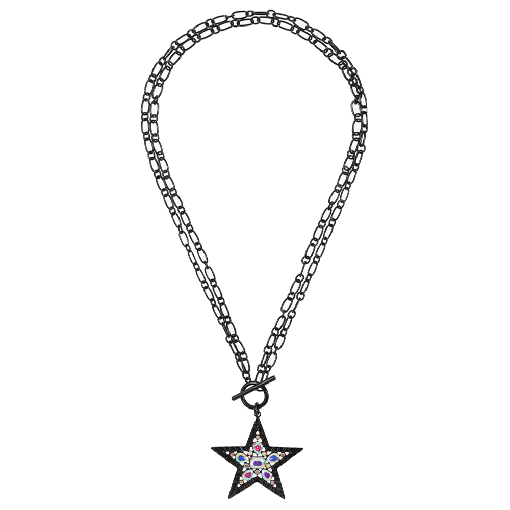 Stone Embellished Star Pendant Toggle Necklace