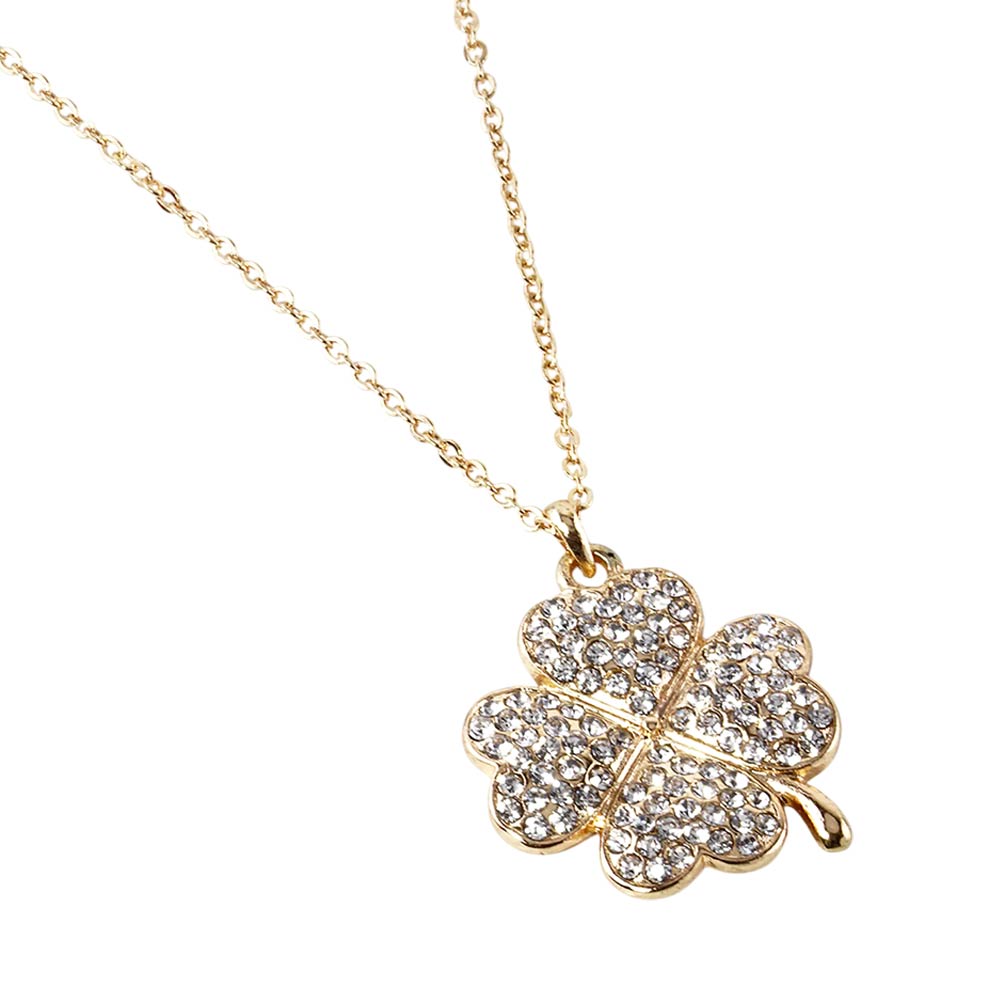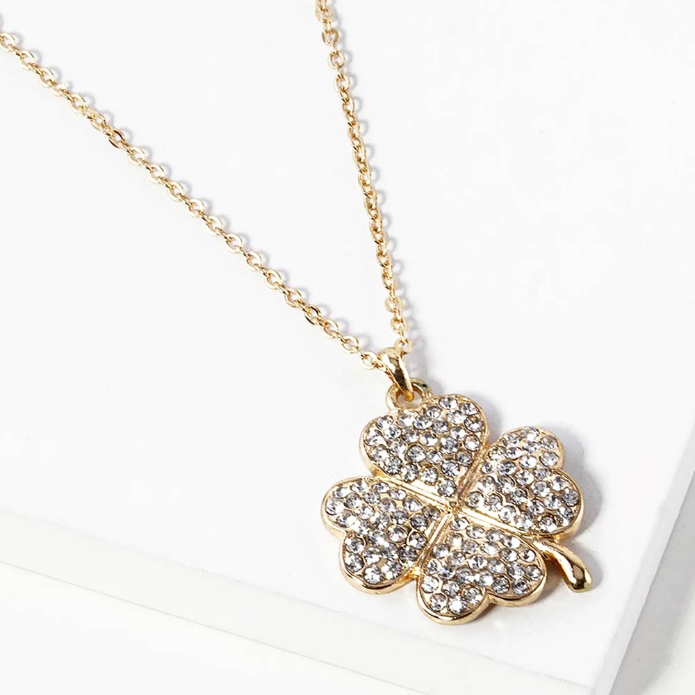 Stone Paved Clover Pendant Necklace Stone Paved Clover Pendant Necklace Stone Paved Clover Pendant Necklace
