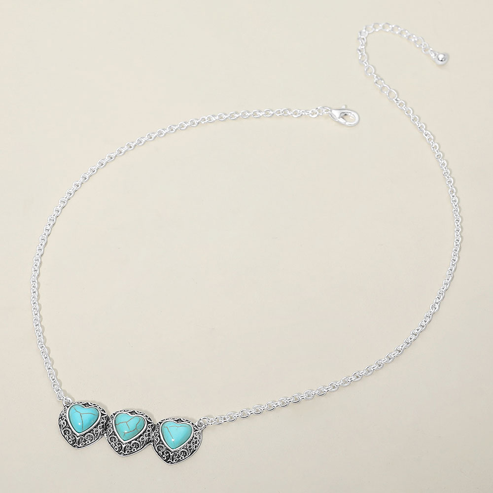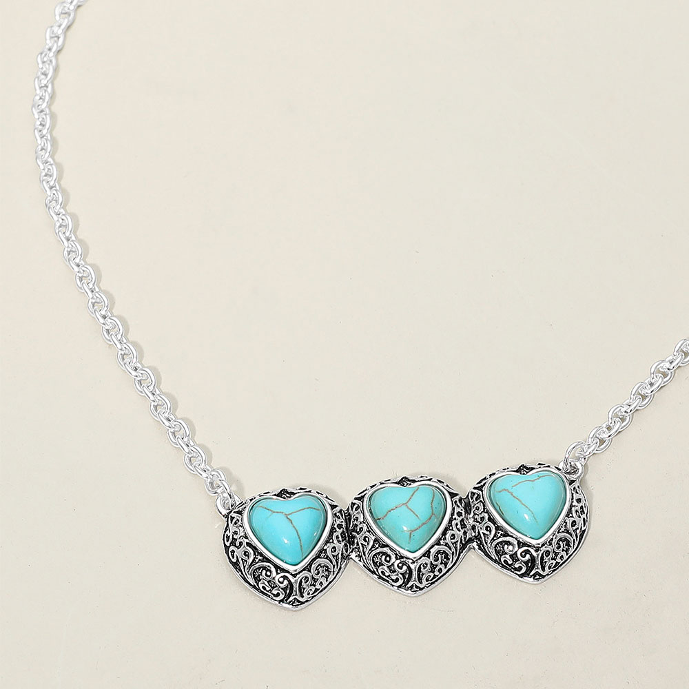 Triple Antique Metal Scrollwork Frame Heart Tile Pendant Necklace