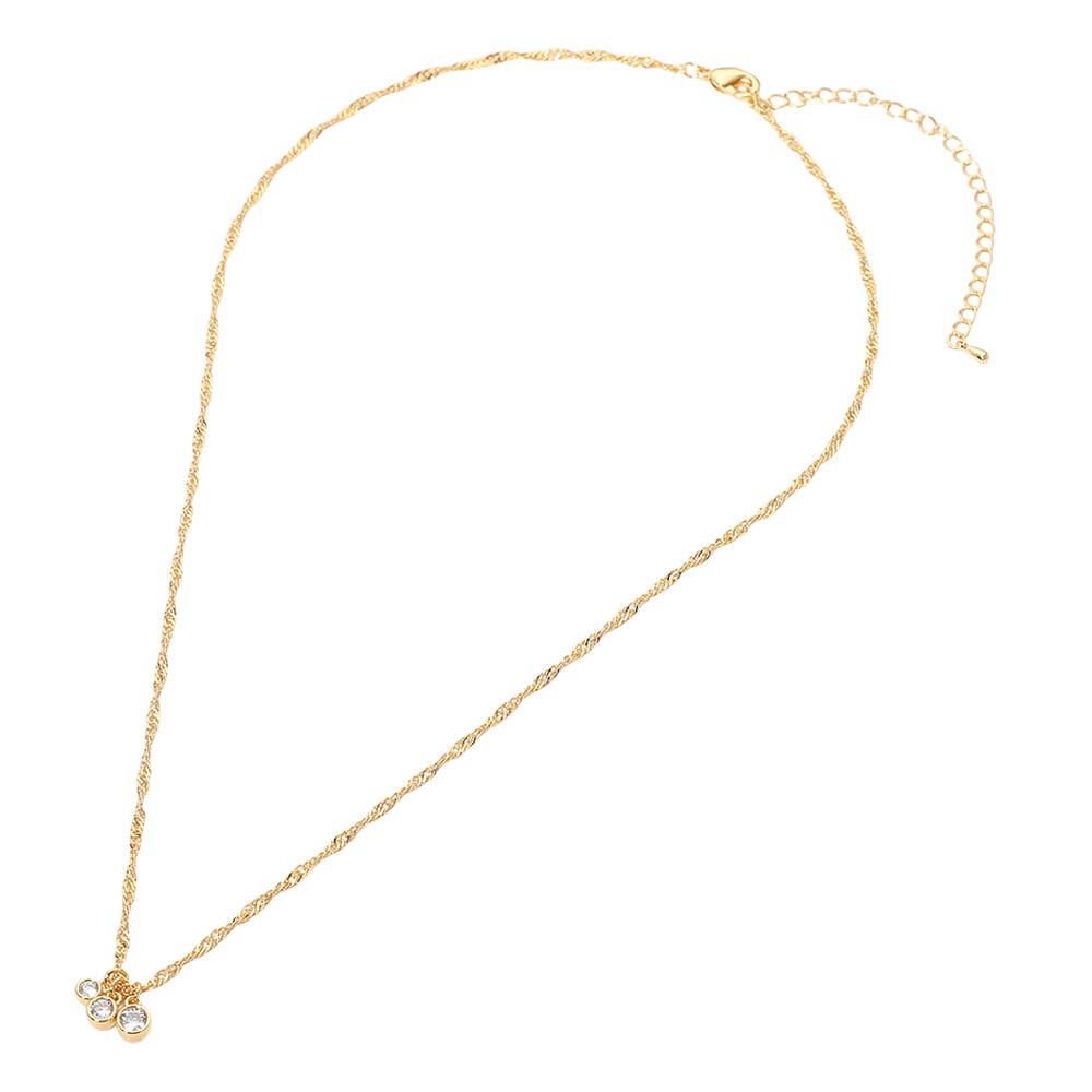 Details • Necklace Size : 16" + 3" L • Pendant Size : 0.3" L • This elegant pendant necklace features three small round accents suspended from a delicate chain, creating subtle movement and refined shine. Designed for effortless everyday wear, it layers beautifully with other necklaces or stands alone for a polished look. A versatile jewelry piece ideal for casual styling, office outfits, gifting, and boutique collections seeking timeless, minimal accessories. • Brass • Lead and Nickel Compliant • Made In Korea