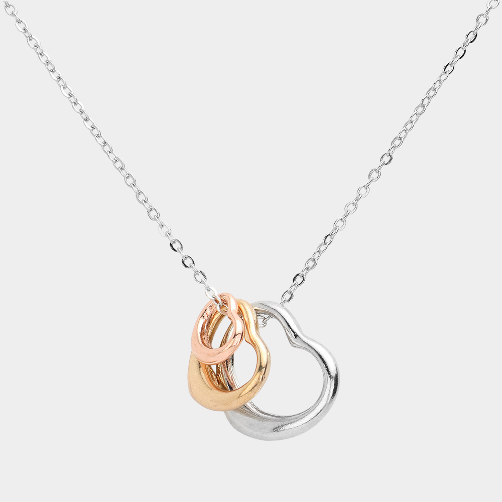 Enamel Heart Lock Cherry Metal Bow Bear Pendant Double Layered Necklace