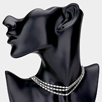 White Gold Dipped Metal Chain Triple Layered Bib Necklace