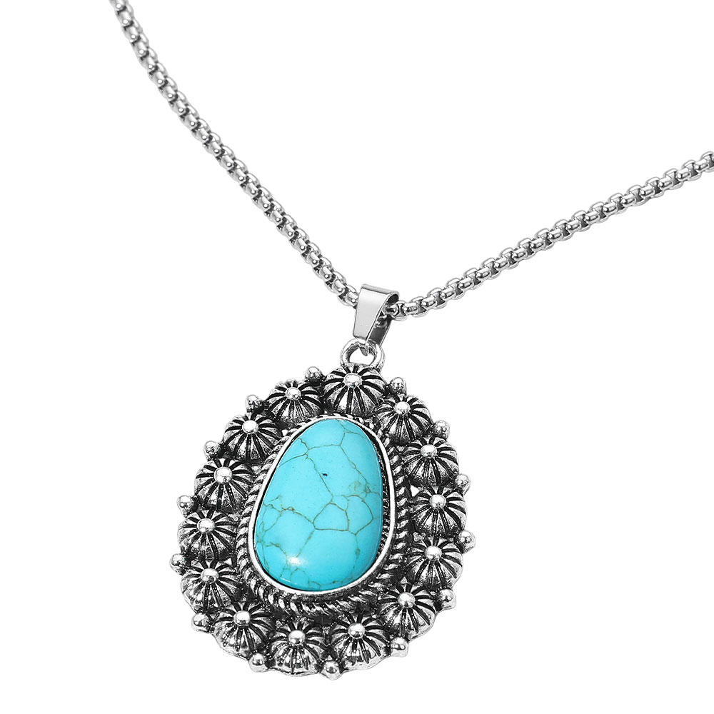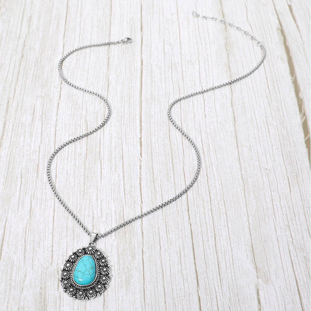 Details • Necklace Size : 23.5" + 3" L • Pendant Size : 1.3" X 2" • This floral frame oval pendant necklace combines vintage charm with intricate craftsmanship. The detailed floral border beautifully complements the central stone, creating a timeless accessory that adds elegance and sophistication to both casual and dressy looks. • Lead and Nickel Compliant